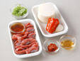 赤ピーマンは縦4つに切り、ヘタと種を取って、ひとくち大に切る。
