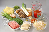 煮立てば、ニンニク、ショウガを加え、白菜キムチを漬け汁ごと加え、煮立てば1の餃子を加え、再び煮立てば中火にする。