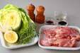 レタスは食べやすい大きさにちぎって水に放ち、水気を切る。