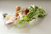 ショウガは皮をむき、せん切りにする。
