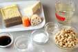 鍋にだし汁、<調味料>を入れて強火にかけ、煮立てば大豆、油揚げ、ニンジン、水煮タケノコ、水きりしたレンコン、板コンニャクを加える。