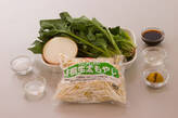 ほうれん草は根元を少し切り落としてきれいに水洗いし、3cmの長さに切る。