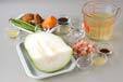 冬瓜は皮をむいて種とワタを取り出し、食べやすい大きさの薄切りにする。