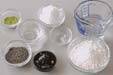 <黒ゴマみつ>の練り黒ゴマ、砂糖をよく混ぜ合わせ、お湯を加えて砂糖を溶かす。塩、すり黒ゴマを加えて更に混ぜ合わせ、冷やしておく。