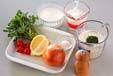 トマトはヘタを取って水洗いし、レモンは8つのくし切りにする。