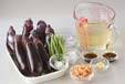 鍋に水気を切ったナスを並べ、だし汁、もどした干しエビ、干しエビの戻し汁、<調味料1>を加え、落とし蓋をして強火にかける。