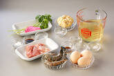 小鍋に<下味>の材料を入れて中火にかけ、煮立ってくれば鶏肉を入れ、再び煮立てばエビを加え、エビの色が鮮やかになれば火を止める。