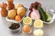 鍋に水気を切ったジャガイモ、ニンジン、卵を入れ、かぶる位の水を加える。強火にかけ、煮立てば中火で7~8分ゆでる。