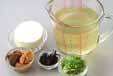 干しワカメは水で柔らかく戻し、水気を絞り、長い場合はザク切りにする。