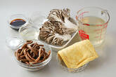 油揚げは熱湯に通して油抜きをし、縦半分に切り、さらに横幅1cmに切る。
