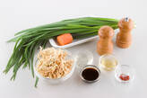 鍋にたっぷりの熱湯を沸かし、ニンジン、(気になる場合は切り干し大根も)、ニラをサッとゆで、ザルに上げ水気を切る。