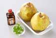 ラ・フランスは水洗いし、縦4つに切って皮をむき、芯を切り落とす。