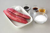 サツマイモはひとくち大の乱切りにし、塩水に10分くらいさらす。