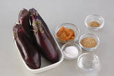 ナスをひとくち大に切って器に盛り、2の<ゴマ田楽みそ>を掛けて、白ゴマを振り掛ける。