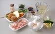 鍋に<合わせだし>を煮立て、鶏肉、玉ネギ、ニンジン、ゴボウ、生シイタケを加え、全体にしんなり柔らかくなるまで中火で煮る。