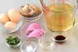 器にかまぼこ、シイタケを入れ、卵液を静かに注ぐ。