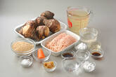 器にエビ芋を盛り、煮汁を強火にかけ煮立てばニンジンを加え全体にしんなりすれば、2の鶏肉を加える。