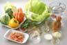 春キャベツ1/4個はせん切りにする。春キャベツの葉2~3枚は芯のかたい部分を切り落として帯状に切り、芯は薄切りにしてせん切りに合わせる。ニンジンは皮をむき、棒状に切る。