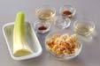セロリは筋を引き、薄切りにして水に放ち、シャキッとしたらザルに上げて水気を切る。