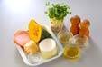 10分くらい漬け、全体になじんだら器に重ねながら盛って、貝われ菜を山高にのせる。