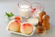 (1)に刻んだ白桃を加えて混ぜ合わせ、食べる直前まで冷やしておく。