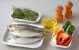 アジの腹の中にローズマリー、タイム、ニンニクを詰める。