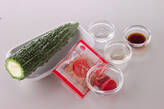 強火で沸騰している熱湯に薄切りのゴーヤを入れ、サッと混ぜ合わせ、再び沸騰すればザルに上げる。冷水に取り、粗熱が取れれば水気をしっかり切る。