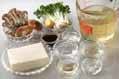 鍋にだし汁を入れて強火にかけ、煮立てば<調味料>、豆腐を入れ、煮立つ直前に豆腐を取り出し、器に移す。