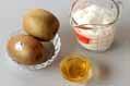 キウィは皮をむき、一口大に切り、ハチミツとからめる。