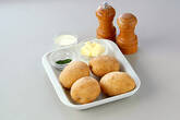 ジャガイモは皮ごときれいに水洗いし、1個ずつラップに包む。電子レンジで4~5分加熱し、向きを変えて、更に4~5分加熱する。竹串を刺してみてスッと刺さればOK、固ければもう少し加熱する。