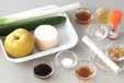 梨は皮をむいてヘタと種を取り、4~5cm長さのせん切りにする。