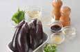 氷水に取って黒い皮をむき、しっかり水気を切って、冷蔵庫で冷たく冷やしておく。ナスのガクを切り落とし、食べやすい大きさに切って器に盛り、ドレッシングを掛けていただく。