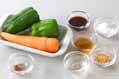 ピーマンは縦半分に切ってヘタと種を取り、ニンジンに合わせて切る。