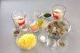 耐熱容器に<ハーブパン粉>を2/3量広げ、カキに<衣>を通しながら並べる。<衣>が残ったらカキ全体にまわし掛ける。