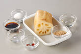 レンコンは皮をむき、薄い半月切りにして水に放つ。