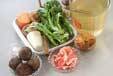 生シイタケは石づきを落とし、軸と笠に切り分ける。軸は縦に2~4等分に切り、笠は堅く絞ったぬれ布巾などで汚れを拭き取り、半分に切り、食べやすい大きさに切る。