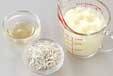 大根おろしに作り置き甘酢を加えて混ぜ合わせ、チリメンジャコを混ぜ合わせる。