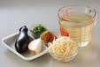 鍋にだし汁を入れて強火にかけ、煮立てばナス、モヤシ、玉ネギを加え、再び煮立てば火を少し弱め3分煮る。