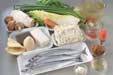 鍋に<合わせだし>をはり、火にかけて煮立てば、サンマの切り身を加える。他の材料も加えてアクを取りながら火を通す。