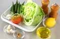 レタスは食べやすい大きさに手でちぎって冷水に放ち、パリッとすれば水気を切る。