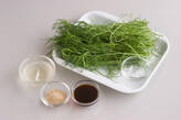 たっぷりの熱湯に塩少々を入れ、おかひじきをサッとゆでる。水に取り、粗熱が取れれば水気をきって食べやすい長さに切り、<浸し汁>に浸す。