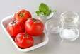 トマトはヘタをくり抜き、熱湯につけて皮が少し破れれば、すぐに冷水にとって皮をむく。(湯むきをする)