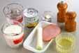 鍋にチキンブイヨンは潰して、他のスープの材料と入れ中火にかけ、煮立てば塩コショウで味を整える。ハム、白ネギを加え、再び煮立てば卵白を加え、全体にふんわり混ぜ合わせて火を止める。