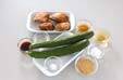 <合わせゴマ酢>にキュウリ、シイタケを加えて和え、器に盛る。