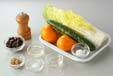 白菜は横1cm幅に切る。キュウリは縦半分に切り、更に斜め薄切りにし、水洗いして水気をきる。