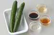 <合わせダレ>に、キュウリを加えて和え、器に盛る。
