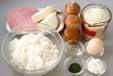 ハム、玉ネギは細かいみじん切りにし、フライパンにサラダ油を中火で熱し、しんなりするまで炒め、塩コショウをする。