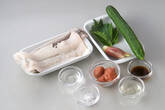 キュウリは4cmも長さのせん切りにし、冷水に放ってパリッとさせ、水気をしっかり切る。