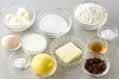 ボウルに無塩バター、クリームチーズを入れ、ハンドミキサー又は泡立て器でクリーム状になるまで混ぜ合わせる。グラニュー糖を加えて更によく混ぜ合わせる。