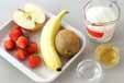 プレーンヨーグルトも加えて軽く混ぜ合わせ、器に盛り分け、ハチミツをかける。
